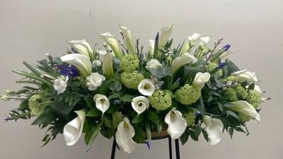 An elegant arrangement of luxury calla lilies and foliage with a blend of other contrasting flowers.